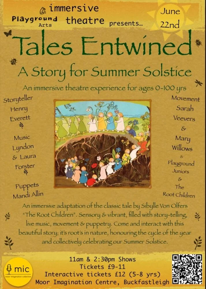 Celebrate the Summer Solstice with us at the MIC in Buckfastleigh. Join us on Sunday 22nd June for ‘Entwined Tales: A Story for the Summer Solstice’ a creative collaboration with Playground Arts.